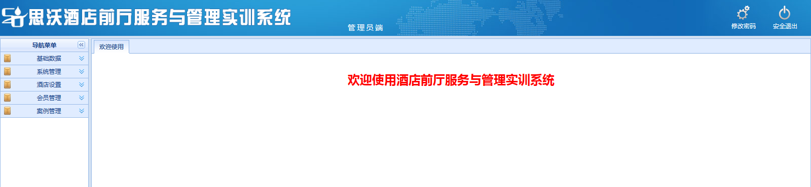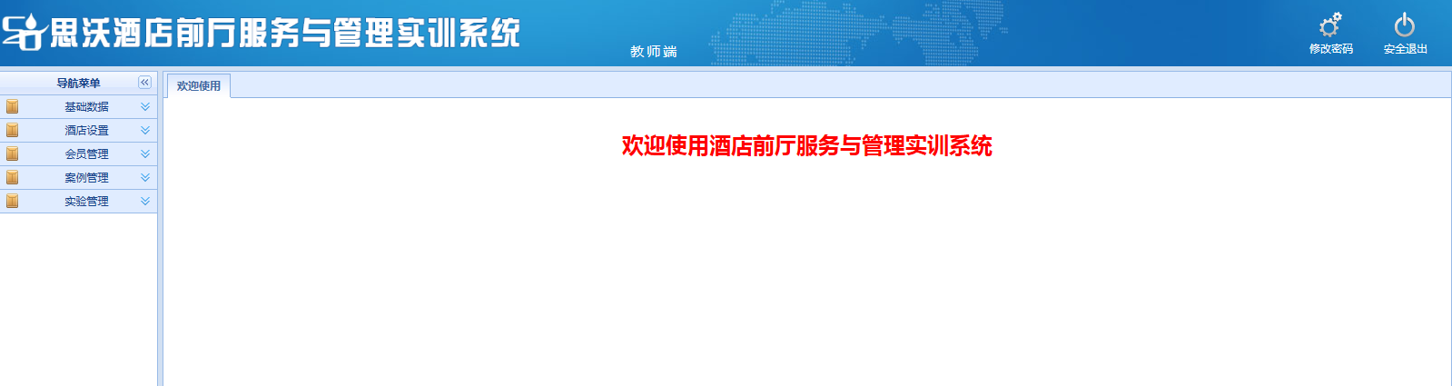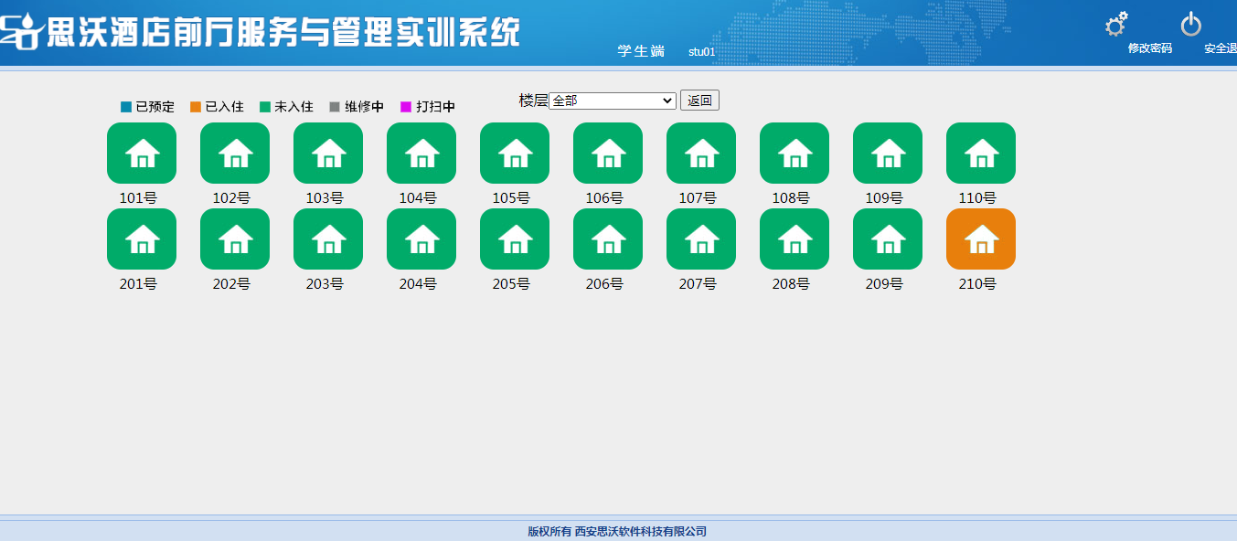 思沃(wo)酒店(dian)(dian)(dian)(dian)前廳服務與管(guan)(guan)理模擬實(shi)訓平臺(tai)系(xi)統以學(xue)生酒店(dian)(dian)(dian)(dian)前廳工作崗位任(ren)務為(wei)基礎,以案(an)例(li)動畫結(jie)合的(de)(de)模式開展情景模擬實(shi)訓,學(xue)生可在該(gai)教(jiao)學(xue)軟件設置(zhi)的(de)(de)虛擬酒店(dian)(dian)(dian)(dian)環(huan)境中,完成預定、入住辦理、續住、退房(fang)、換房(fang)、會(hui)員管(guan)(guan)理、故(gu)障報修、投(tou)訴處(chu)理、黑名單等相關案(an)例(li)任(ren)務的(de)(de)操作。該(gai)教(jiao)學(xue)平臺(tai)軟件可以逼真的(de)(de)體驗實(shi)際酒店(dian)(dian)(dian)(dian)前廳工作的(de)(de)過程。本(ben)公司為(wei)了更好滿足高校的(de)(de)教(jiao)學(xue)需(xu)求,也會(hui)根據(ju)高校的(de)(de)需(xu)求提(ti)供(gong)酒店(dian)(dian)(dian)(dian)管(guan)(guan)理實(shi)訓室解決方案(an),