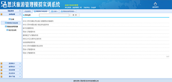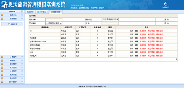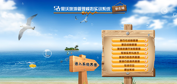 思沃旅(lv)(lv)(lv)游(you)管(guan)(guan)理(li)(li)(li)(li)模(mo)擬實(shi)(shi)訓系統分為模(mo)擬操作和旅(lv)(lv)(lv)游(you)知識練習(xi)兩(liang)大(da)(da)模(mo)塊(kuai),涵蓋旅(lv)(lv)(lv)行社業的(de)(de)分銷、操作、結算、統計(ji)分析等各大(da)(da)業務(wu)模(mo)塊(kuai),該實(shi)(shi)訓教(jiao)(jiao)(jiao)學(xue)(xue)(xue)(xue)(xue)平臺軟件(jian)具備團(tuan)隊(dui)計(ji)劃(hua)、旅(lv)(lv)(lv)游(you)預(yu)訂(ding)、客(ke)房預(yu)訂(ding)、機票(piao)預(yu)訂(ding)、景點門票(piao)預(yu)訂(ding)、團(tuan)餐預(yu)訂(ding)、車輛預(yu)訂(ding)、收付款(kuan)管(guan)(guan)理(li)(li)(li)(li)、供應商、團(tuan)隊(dui)客(ke)戶、VIP散客(ke)管(guan)(guan)理(li)(li)(li)(li)等功(gong)能。從(cong)旅(lv)(lv)(lv)行社經營管(guan)(guan)理(li)(li)(li)(li)、酒店經營管(guan)(guan)理(li)(li)(li)(li)、旅(lv)(lv)(lv)游(you)資源開發與(yu)管(guan)(guan)理(li)(li)(li)(li)、旅(lv)(lv)(lv)游(you)行政管(guan)(guan)理(li)(li)(li)(li)、導游(you)實(shi)(shi)務(wu)與(yu)技(ji)巧五(wu)個方(fang)面讓學(xue)(xue)(xue)(xue)(xue)生(sheng)參與(yu)旅(lv)(lv)(lv)游(you)管(guan)(guan)理(li)(li)(li)(li)的(de)(de)模(mo)擬操作,每個方(fang)面又細分為實(shi)(shi)際流程中涉及(ji)的(de)(de)每個細節,因(yin)此(ci),學(xue)(xue)(xue)(xue)(xue)生(sheng)可(ke)以從(cong)中學(xue)(xue)(xue)(xue)(xue)習(xi)到旅(lv)(lv)(lv)游(you)管(guan)(guan)理(li)(li)(li)(li)的(de)(de)全面的(de)(de)操作流程。此(ci)外,軟件(jian)中教(jiao)(jiao)(jiao)師端對應的(de)(de)實(shi)(shi)驗設置,讓教(jiao)(jiao)(jiao)師可(ke)以方(fang)便地為學(xue)(xue)(xue)(xue)(xue)生(sheng)設置實(shi)(shi)驗的(de)(de)不同(tong)因(yin)素,同(tong)時(shi),教(jiao)(jiao)(jiao)師還可(ke)以查看學(xue)(xue)(xue)(xue)(xue)生(sheng)的(de)(de)操作結果(guo),從(cong)而能夠對學(xue)(xue)(xue)(xue)(xue)生(sheng)的(de)(de)實(shi)(shi)驗進(jin)行評價。教(jiao)(jiao)(jiao)學(xue)(xue)(xue)(xue)(xue)軟件(jian)系統的(de)(de)使用可(ke)以提高學(xue)(xue)(xue)(xue)(xue)生(sheng)的(de)(de)學(xue)(xue)(xue)(xue)(xue)習(xi)興趣,同(tong)時(shi)也(ye)為教(jiao)(jiao)(jiao)師減輕工(gong)作負擔。本(ben)公(gong)司為了更(geng)好滿足高校(xiao)的(de)(de)教(jiao)(jiao)(jiao)學(xue)(xue)(xue)(xue)(xue)需求,會根(gen)據(ju)高校(xiao)的(de)(de)需求提供旅(lv)(lv)(lv)游(you)管(guan)(guan)理(li)(li)(li)(li)實(shi)(shi)訓室解決(jue)方(fang)案。